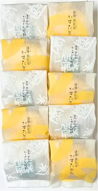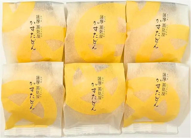 1個108円という手頃な価格で購入でき、明石屋のかるかん饅頭と食べ比べするのもおすすめです。シンプルな味わいのため、幅広い世代に受け入れられる商品となっています。かすたどんとセットになった箱入り商品もあり、お土産として便利です。鹿児島空港や天文館の店舗で購入でき、鹿児島の伝統菓子を気軽に楽しめます。