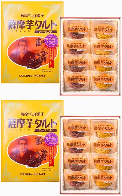 鹿児島らしく特産であるさつまいもをふんだんに使い、タルト生地とさつまいも餡の絶妙なバランスが特徴となっています。賞味期限も比較的長く、遠方へのお土産にも適しています。1箱800円前後で、鹿児島空港や天文館の土産店、鹿児島中央駅などで購入可能です。安納芋など鹿児島産の品種を使った商品が多く、さつまいもの自然な甘みを楽しめます。