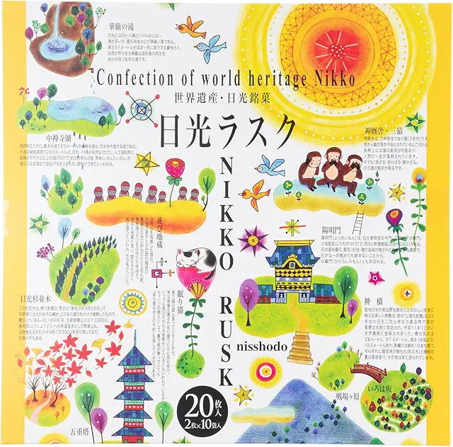 元祖日昇堂の日光ラスクは、カラフルなパッケージが目を引く定番の洋菓子です。創業80年の老舗が手がける商品で、味もさることながら見た目も楽しめる日光を代表する銘菓となっています。