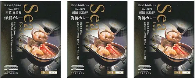 大分の老舗洋食レストラン五島軒の味を自宅で楽しめるレトルトカレーで、1箱400円前後、長年愛される本格的な味わいです。
