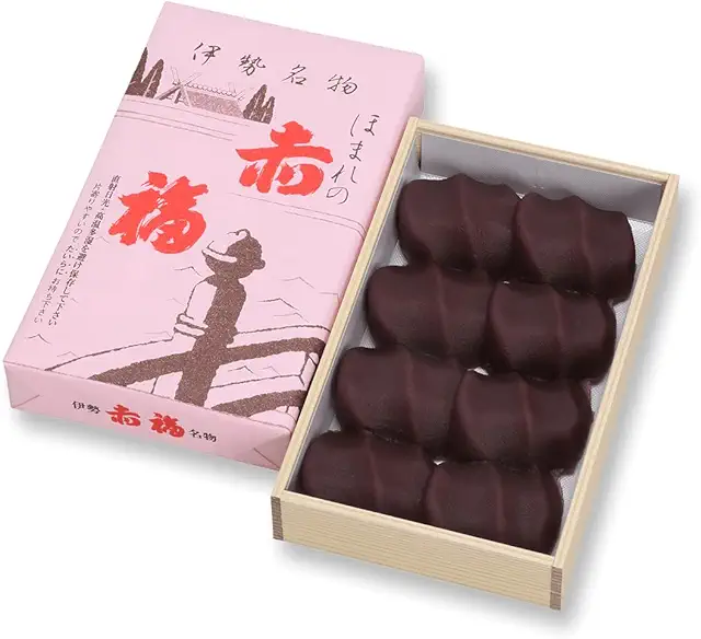 独特な形は伊勢神宮神域を流れる五十鈴川のせせらぎをかたどり、餡につけた三筋の形は清流、白いお餅は川底の小石を表しています。