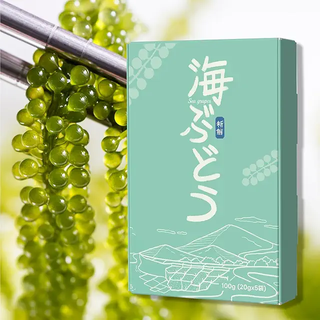 沖縄の海で採れる海藻の一種で、600円前後から購入可能、プチプチとした食感が特徴でサラダやそのまま食べるのが一般的で健康的な食材です。