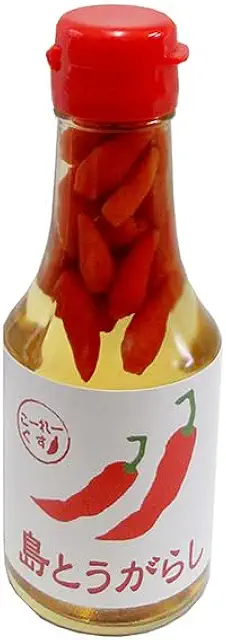 石垣島産の唐辛子を使用したピリ辛調味料で、400円前後から購入可能、泡盛に漬け込んだタイプが一般的で沖縄そばや炒め物など様々な料理に活用できる商品です。