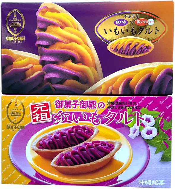 石垣島産の希少紅芋を使用した濃厚タルトで、800円前後から購入可能、紅芋の自然な甘さと鮮やかな紫色が特徴でしっとりとした食感が楽しめる商品です。個包装になっているため配りやすく、常温保存可能で賞味期限も長く遠方へのお土産にも向いています。南ぬ島石垣空港や市街地の土産店で購入できます。