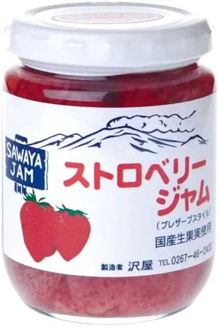 沢屋のジャムは、創業72年を超える軽井沢を代表するジャム専門店の看板商品で、軽井沢お土産ランキングで常に上位にランクインする人気商品です。新鮮な国産生果実を使い、北海道産のビート(甜菜)グラニュー糖のみを使用し、全て軽井沢の自社工場で手作りされています。