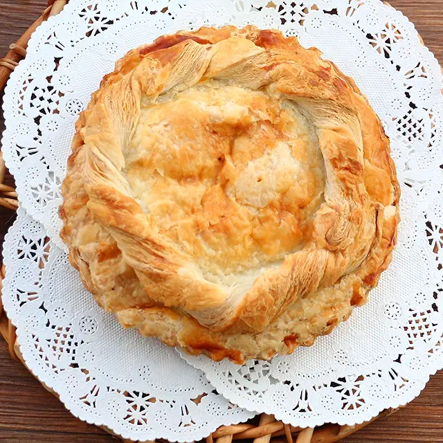 サクサクのパイ生地と甘酸っぱいアップルフィリングが絶妙で、トロっとしつつもシャキシャキしたりんごの食感が残っているのが魅力です。