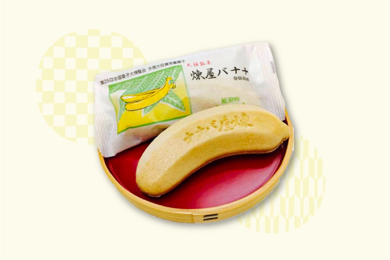 煉屋バナナは北国秋田でバナナという話題性抜群の大館名物で、昭和初期から販売されている歴史あるお菓子です。最中の中にバナナ風味の白餡が入っており、第25回全国菓子大博覧会外務省大臣賞受賞の大館の有名なお菓子です。果物そのままの味をお菓子にしたいという注文を受け、煉屋菓子舗が作り上げました。