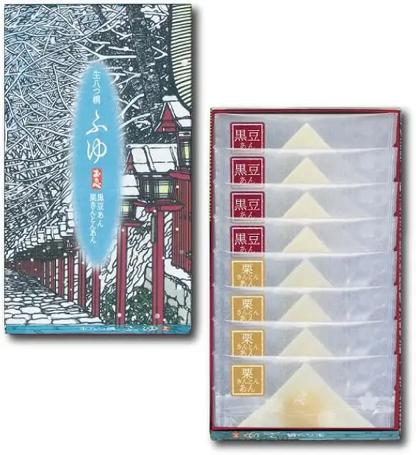 比叡山の阿闍梨が修行の際に使う笠をモチーフにした形状で、もちもちの皮に丹波大納言小豆を使った餡がたっぷり入っています。生地はふっくらと柔らかく、餡との一体感が絶妙で一度食べたら忘れられない美味しさです。