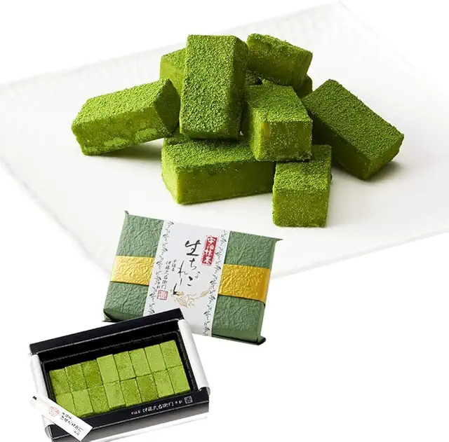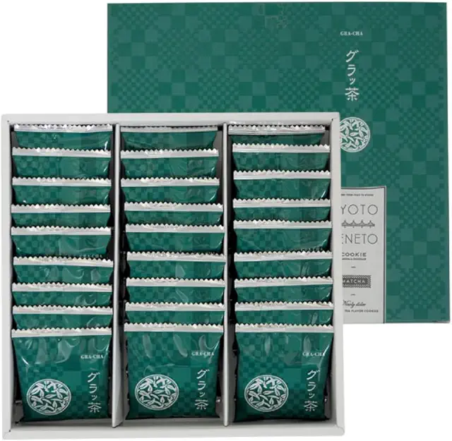 サクサクのラングドシャ生地に濃厚なホワイトチョコレートがサンドされており、抹茶の苦味とチョコレートの甘みが絶妙にマッチしています。京都らしい上品なパッケージも贈り物として喜ばれるポイントです。