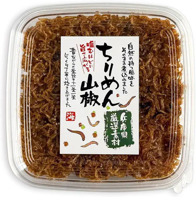 ちりめん山椒は京都の食卓に欠かせない定番の惣菜で、ちりめんじゃこと実山椒を甘辛く炊き上げた商品です。ごはんのお供として最適で、お酒のおつまみとしても人気があります。