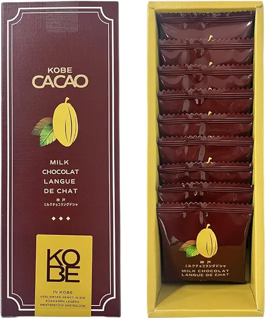 神戸の街並みを感じる包装紙で包まれており、お土産としての見栄えも良く贈答用に最適です。ラングドシャの軽やかな食感と、メープルの優しい甘さ、兵庫牛乳のコクが絶妙に調和しています。1箱600円前後で、神戸市内の駅構内や百貨店で購入できます。同シリーズのミルクチョコラングドシャとのセットも人気があります。